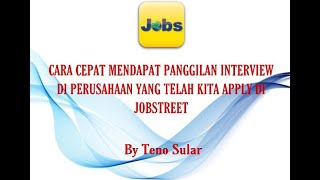 - CARA CEPAT MENDAPAT PANGGILAN INTERVIEW DI PERUSAHAAN YANG TELAH KITA APPLY DI JOBSTREET